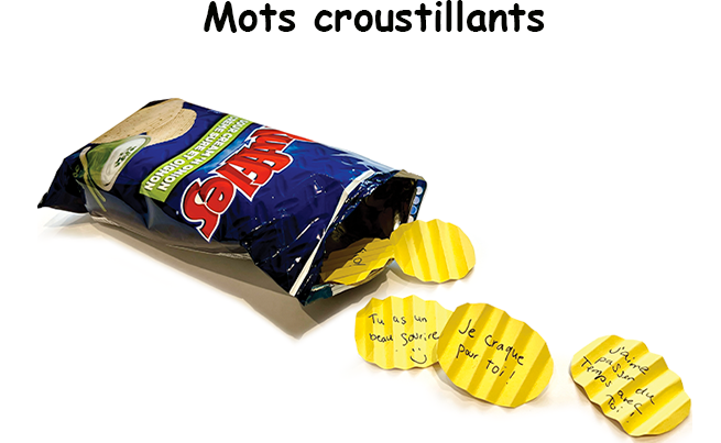 - Écris des mots gentils ou des petits messages d’amour sur les croustilles de papier.