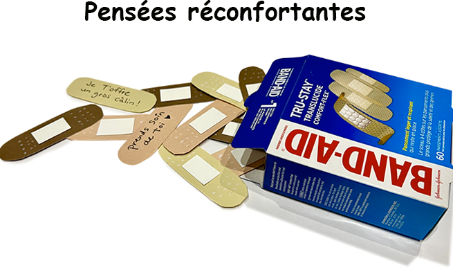 - Écris des petits mots sur les pansements et dépose-les dans la boîte.