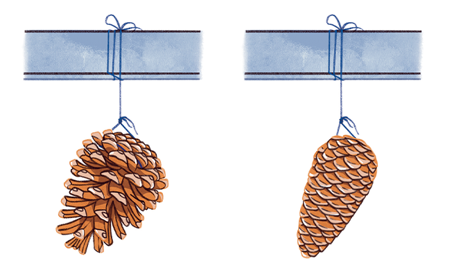 1. Au parc ou en nature, cherche une cocotte. Tu peux utiliser la cocotte de n’importe quel conifère. Mais avec celle d’un pin, on voit plus facilement le mouvement des écailles.