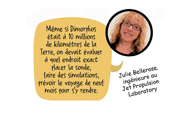 L’ingénieure québécoise Julie Bellerose était aux commandes de la sonde DART. Elle se souvient : « C’était très, très stressant. Surtout le dernier mois! Il fallait faire beaucoup d’ajustements parce que le système de propulsion ne fonctionnait pas comme prévu. »